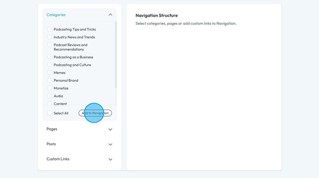 6. Click "Categories" and select the categories you want to include. The categories that appear here have been created in "Categories" under "Create"
