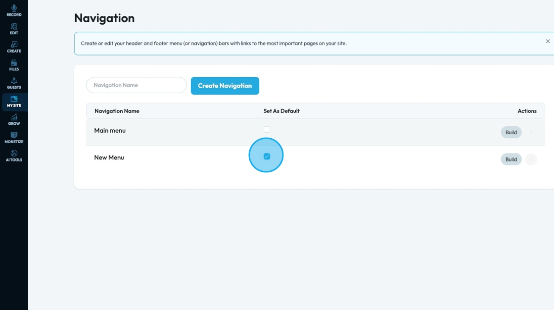 16. Check "Set As Default" for the navigation that you want to be the default menu for your website