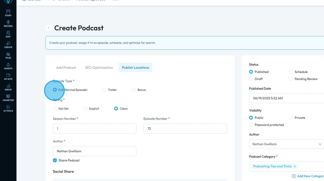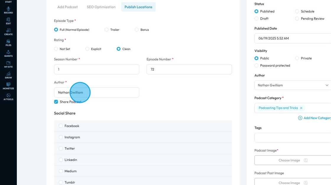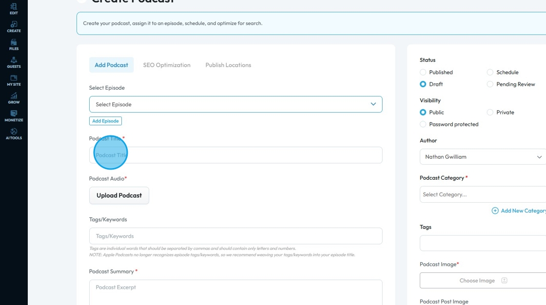 8. Click the "Podcast Summary" to add a short summary about the podcast