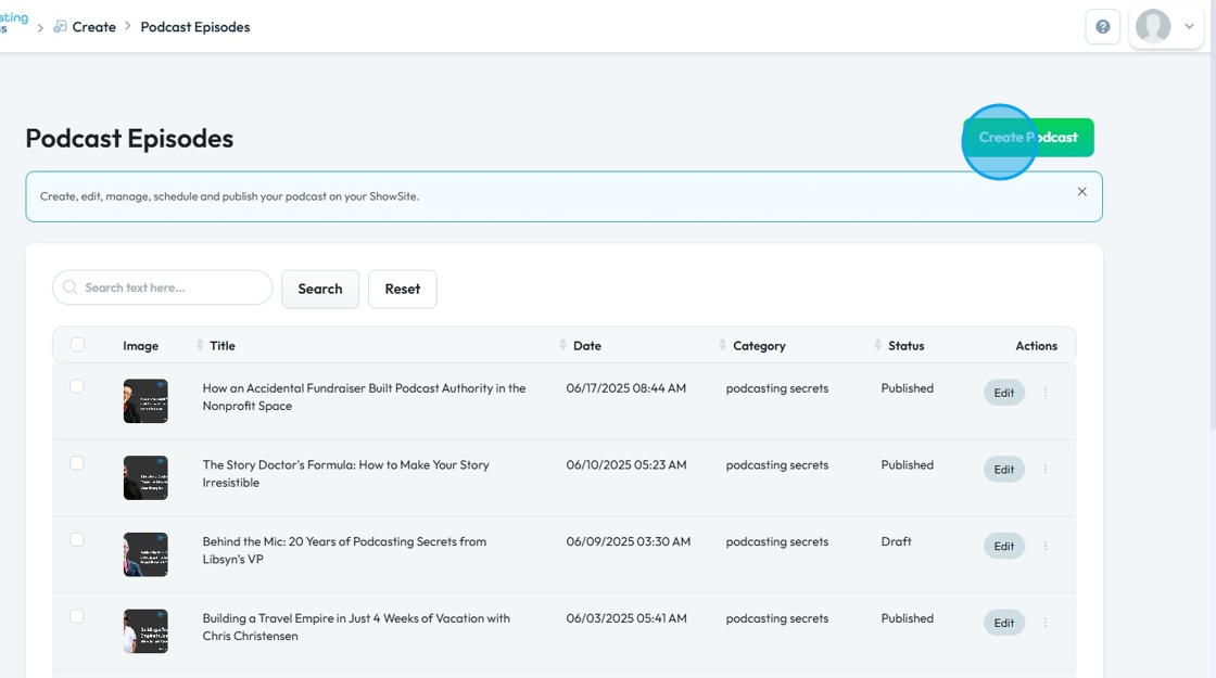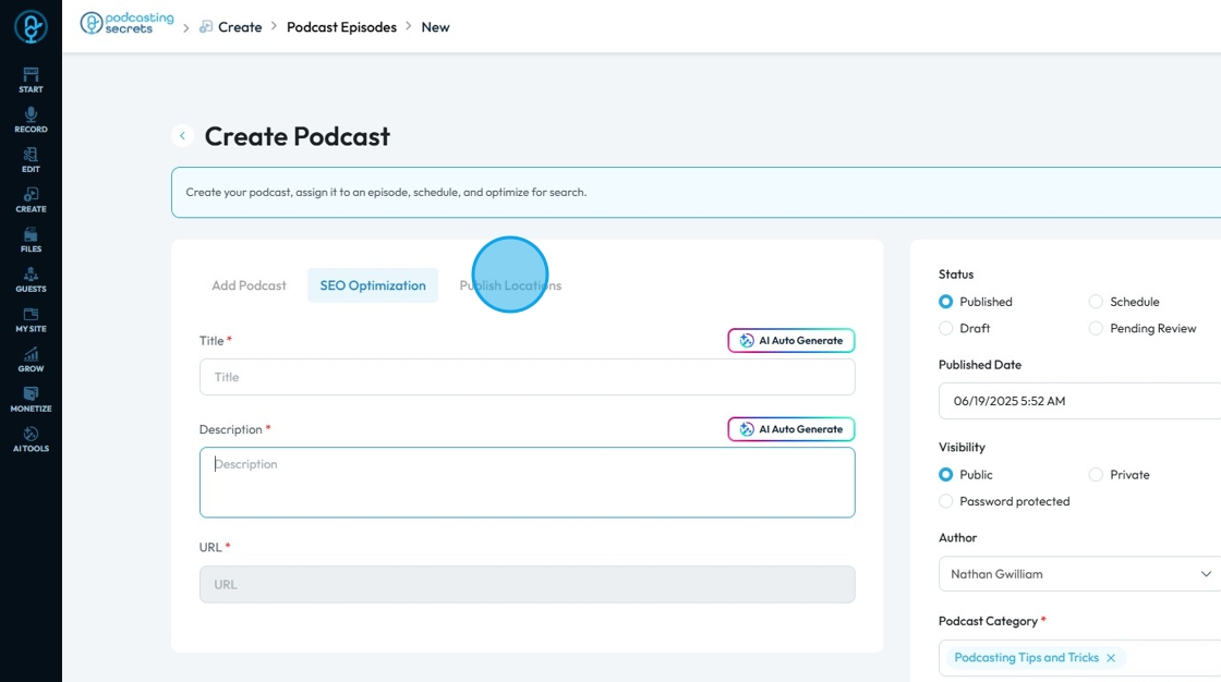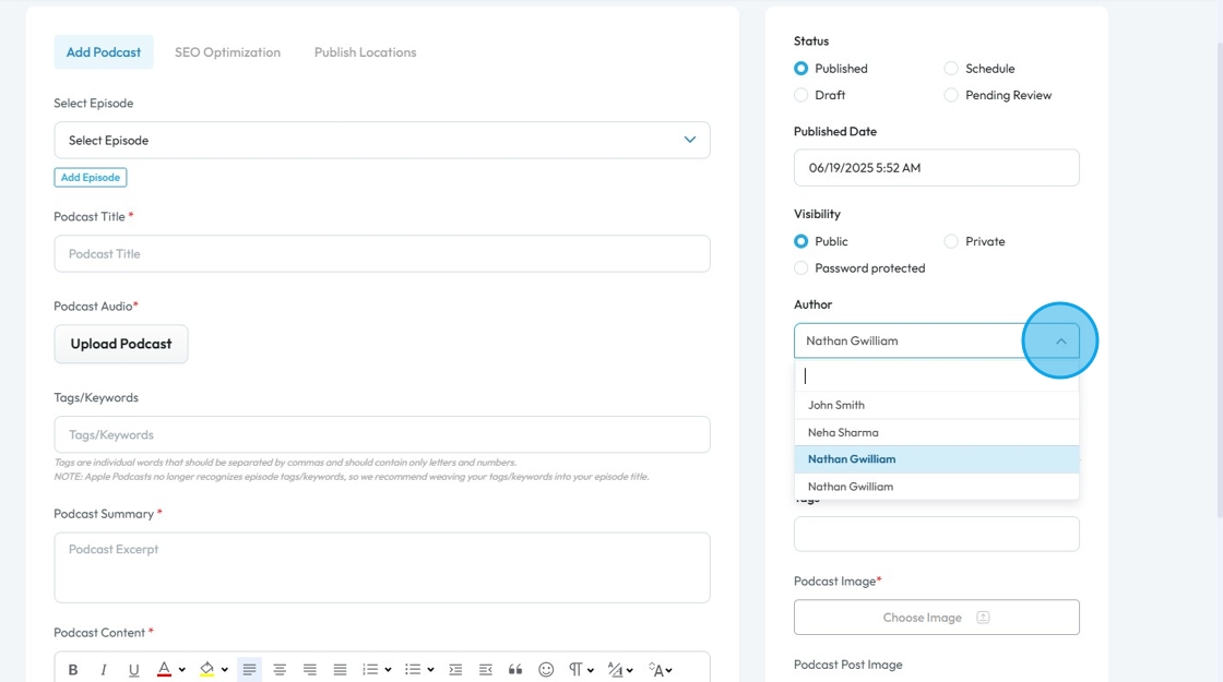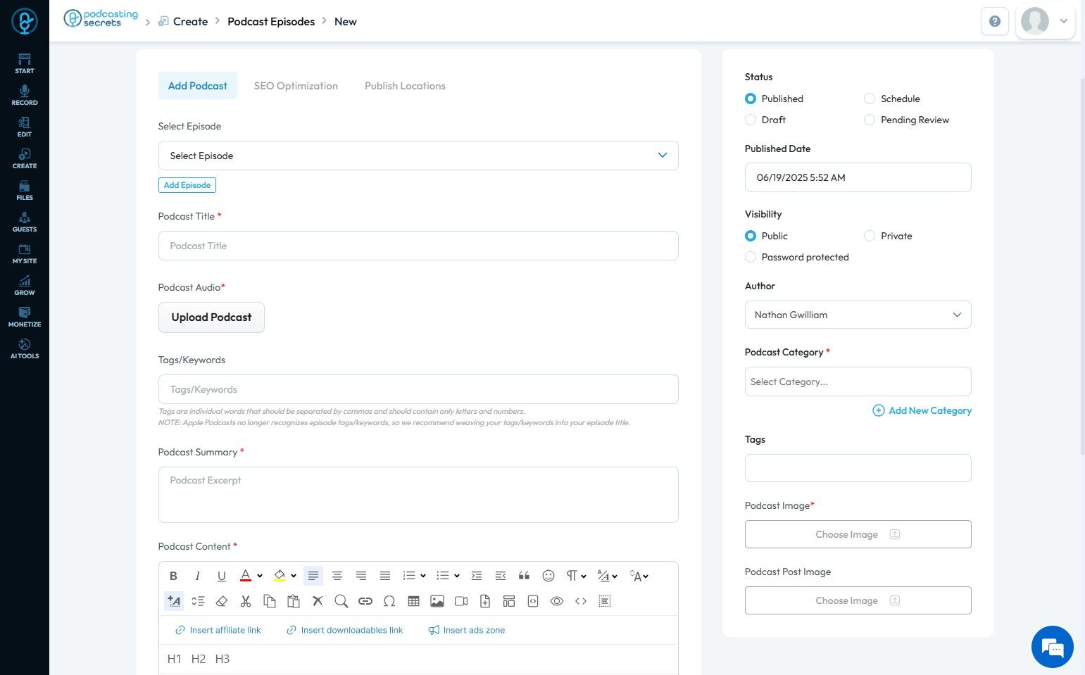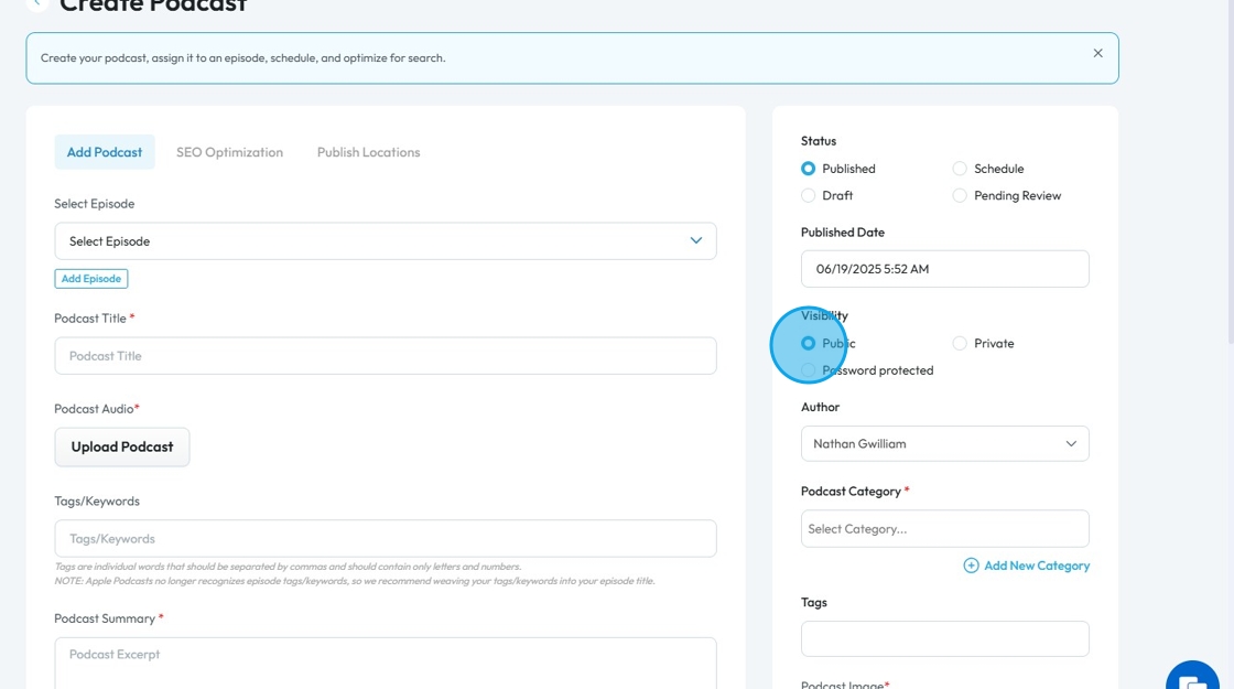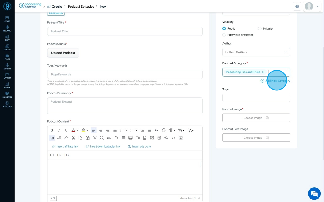 9. Click "Podcast Content" to add a detailed description of the podcast.