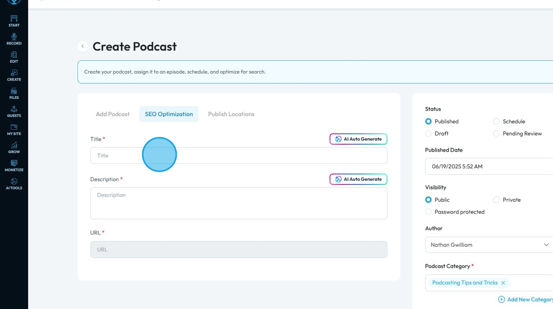 19. Click "SEO Optimization" to adjust what people see when they search for your show