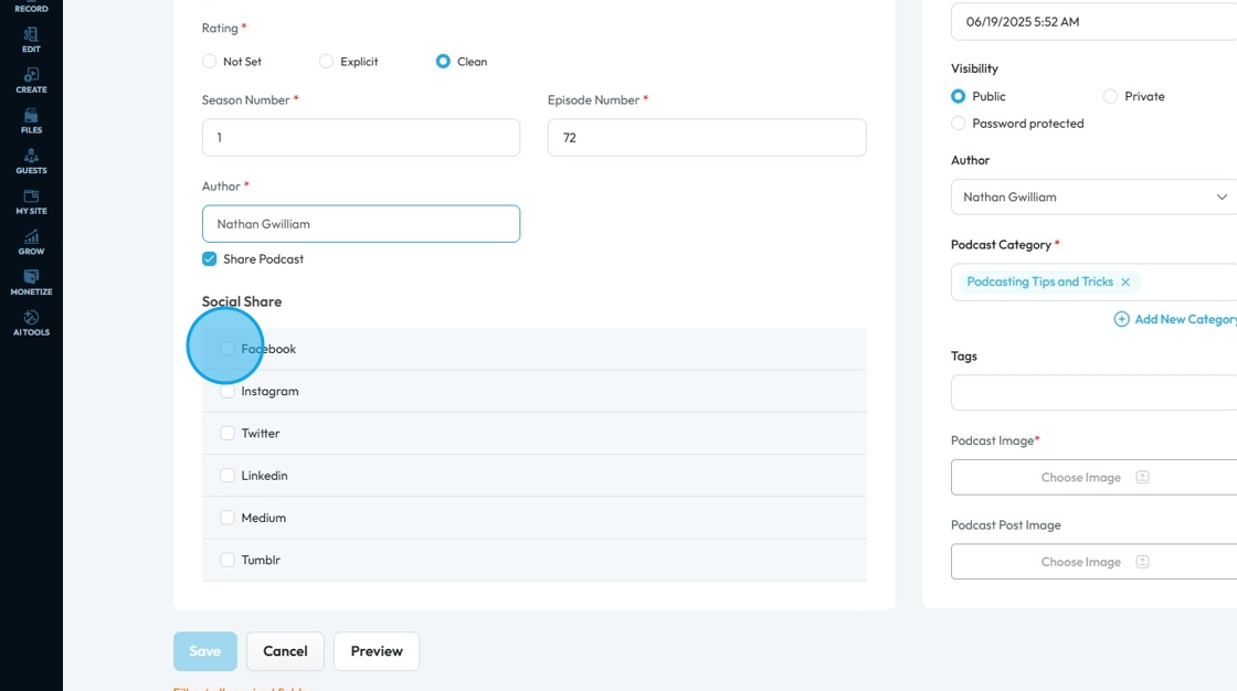 26. Select the platforms you want to share your podcast episode. Following are the social media platforms: