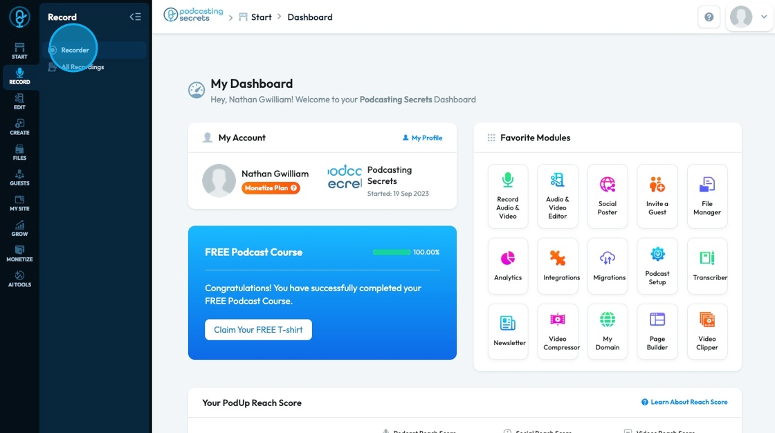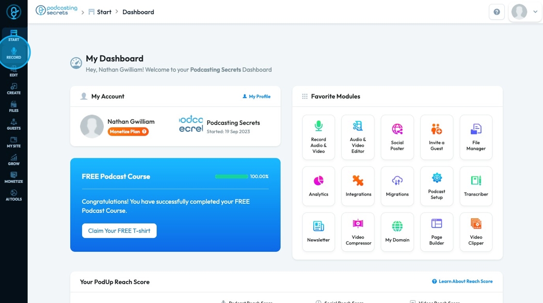 2. 1. Click "Record Audio & Video" in "Favorite Modules" on the Dashboard
