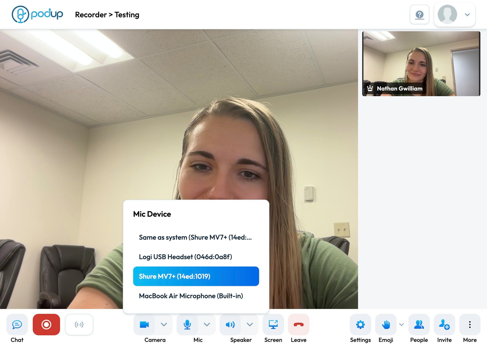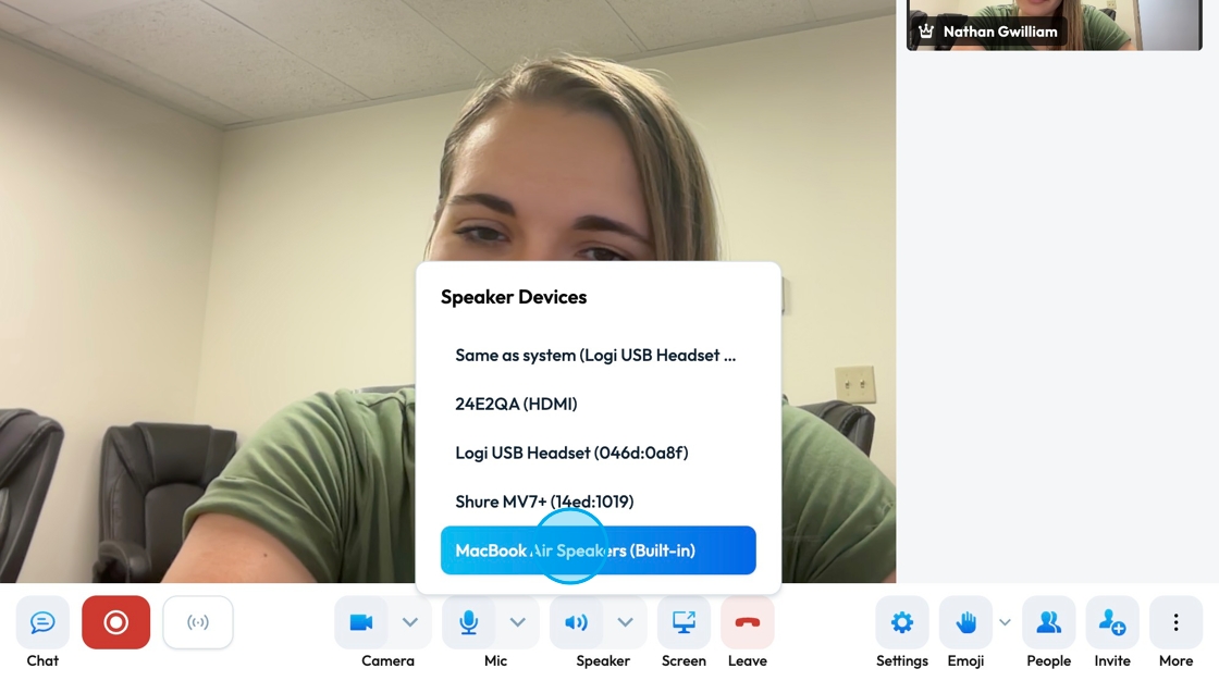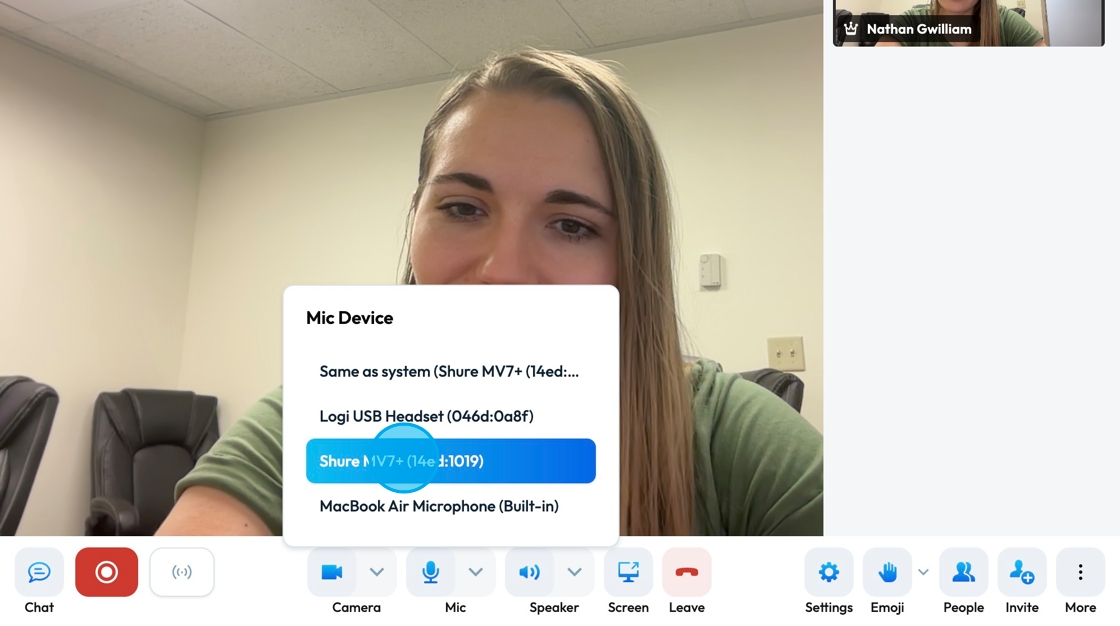19. The mic icon at the bottom will allow you to change the input for your microphone
