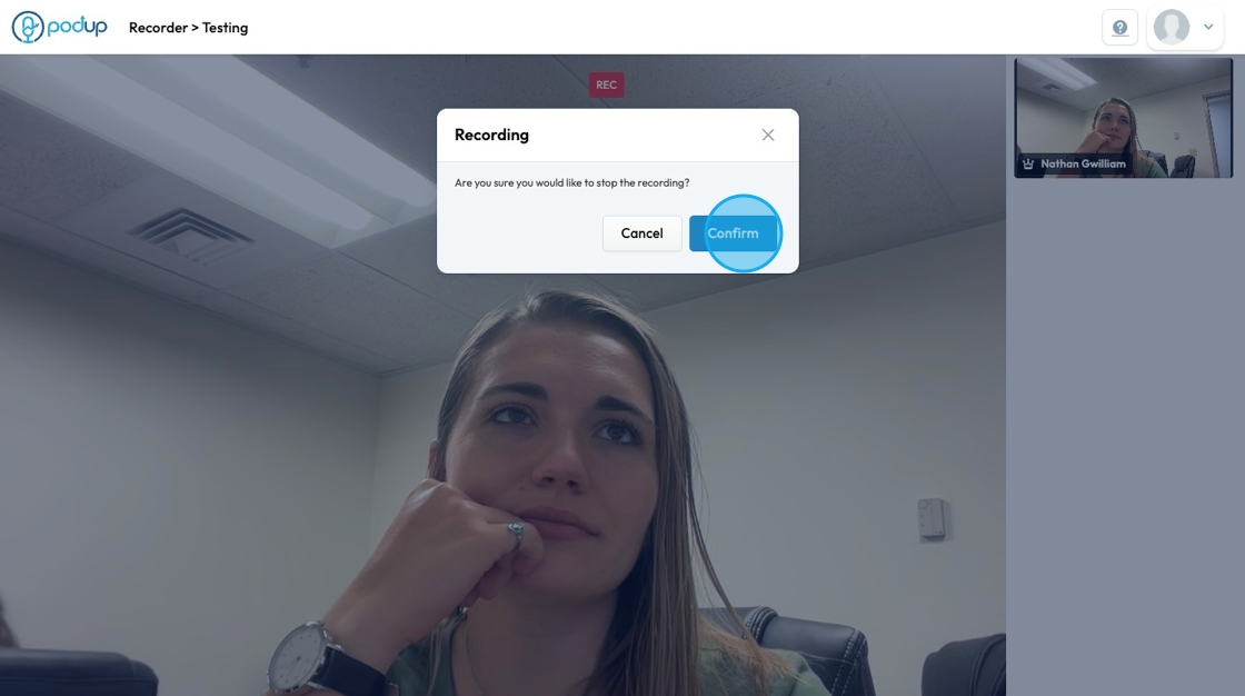 14. Stop the recording by clicking the red timer in the bottom left corner