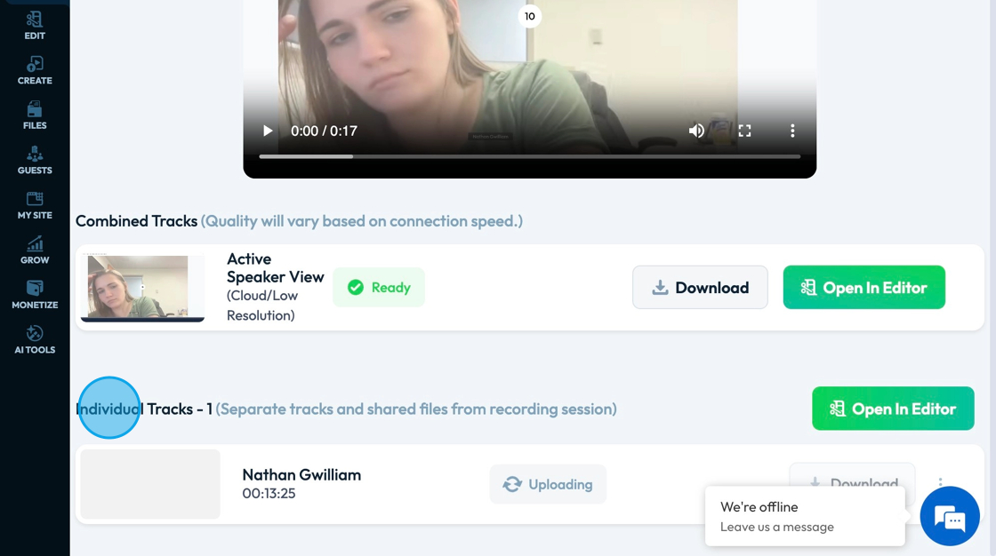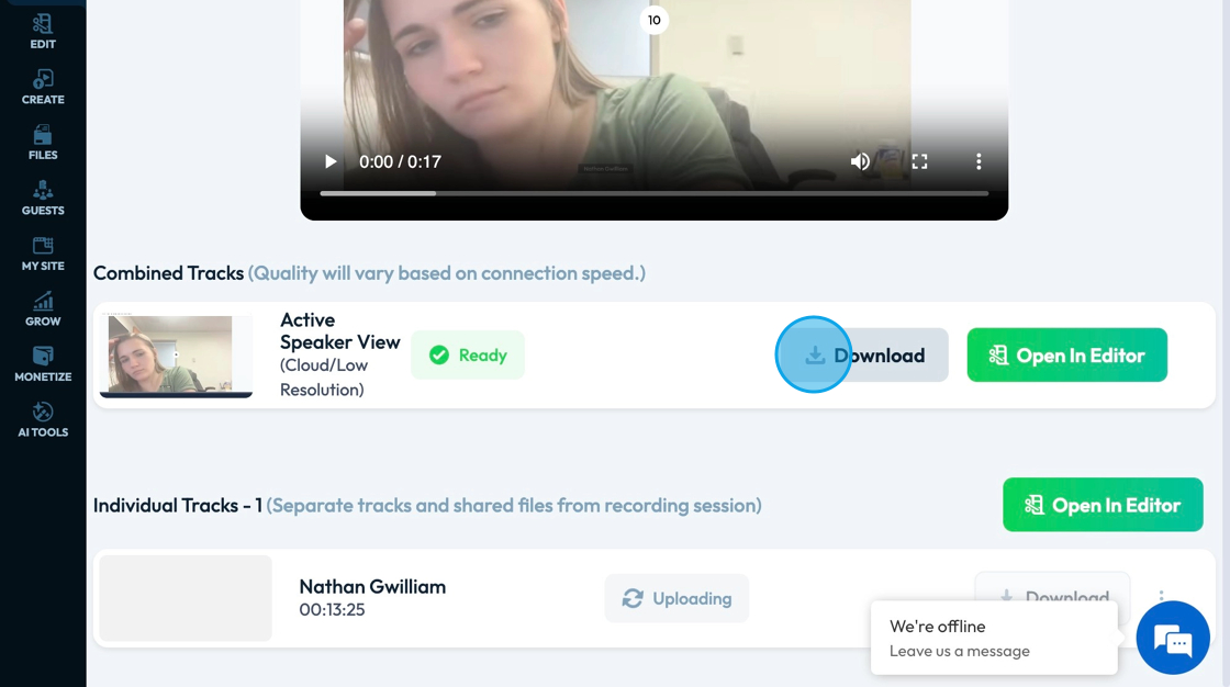 37. Once in the recording, you can download the video by clicking "Download" or edit the track by selecting "Open in Editor"