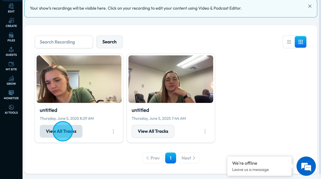 36. Click "View All Tracks" to view the individual tracks of the recording