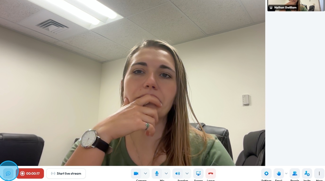 16. Click the chat icon in the bottom left-hand corner to chat with your guest.