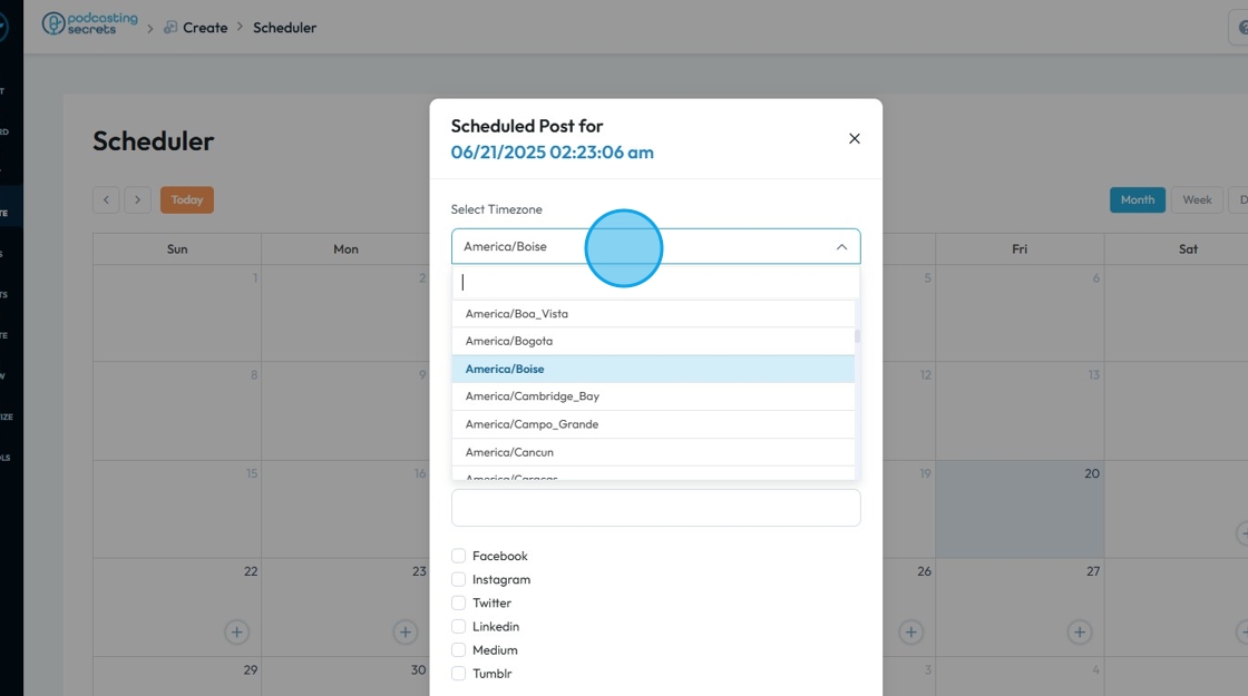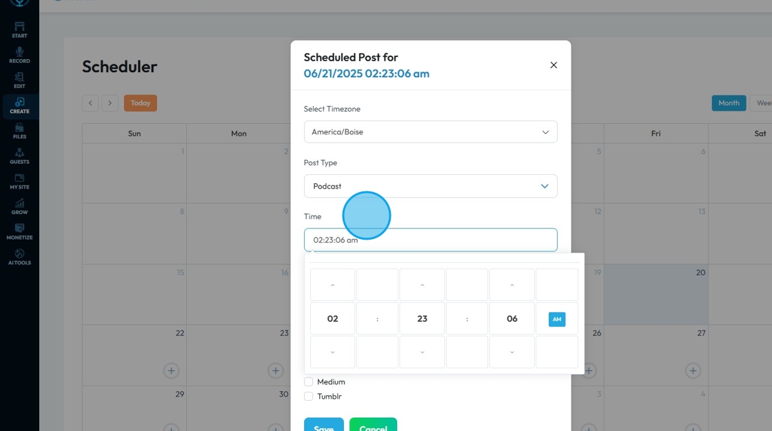 8. Click on the "Time" section to enter the time you want to schedule your post