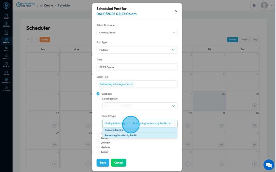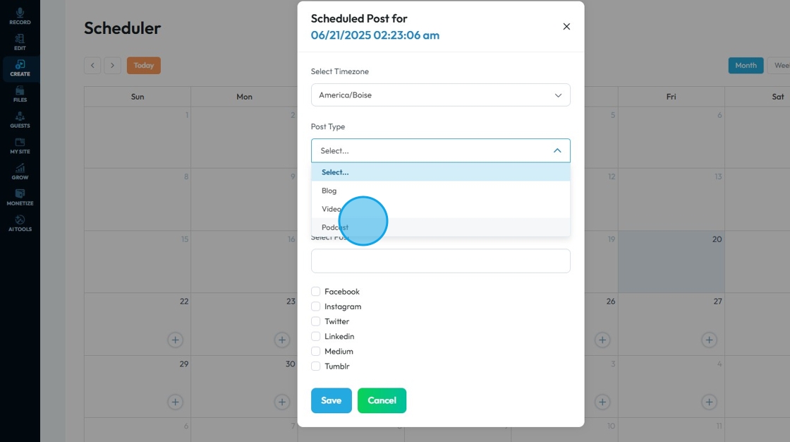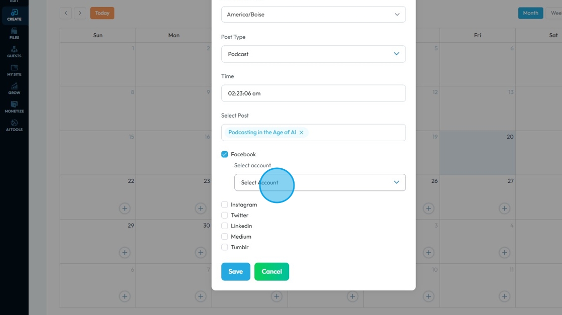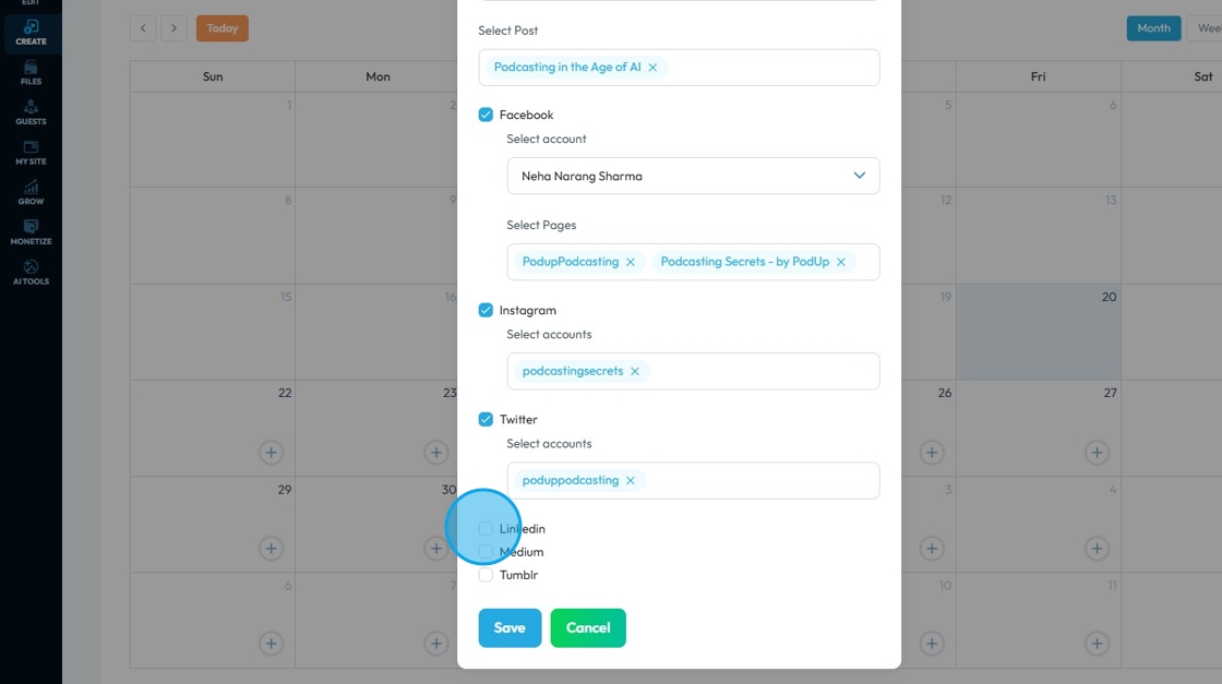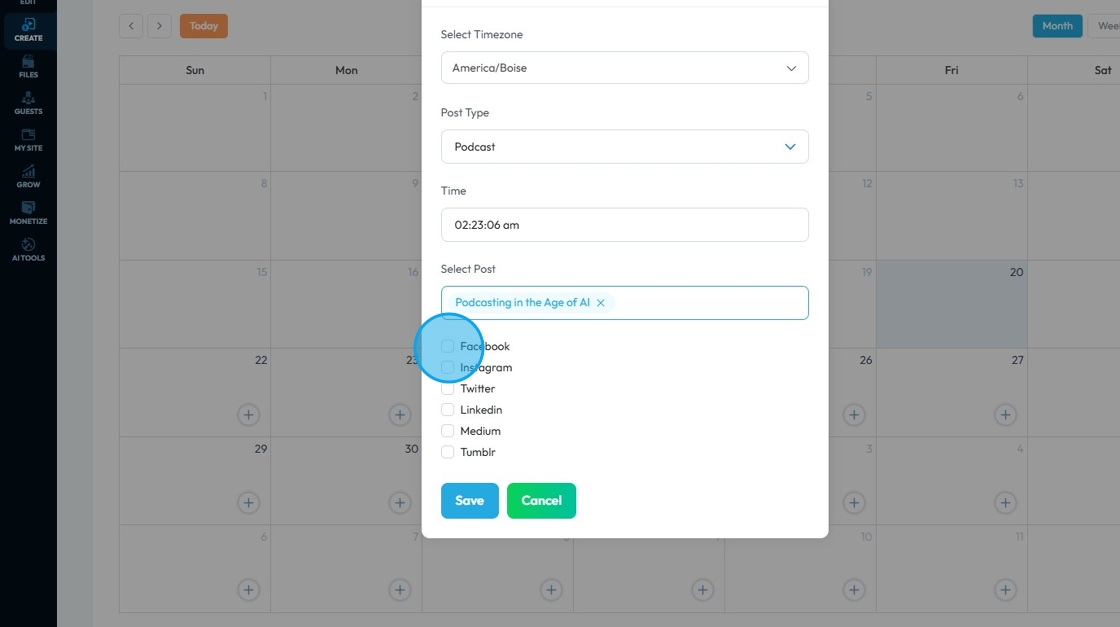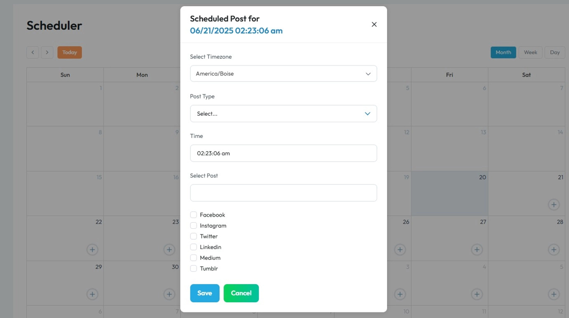 5. Once you click on the day/date, you will get a pop up window where you can fill in the details of your post