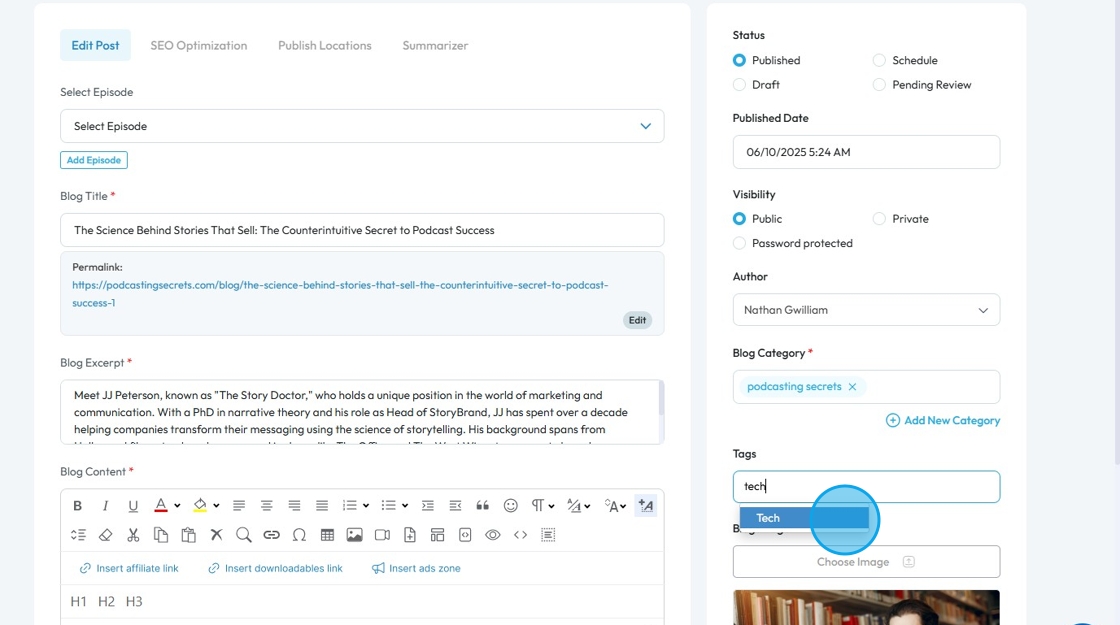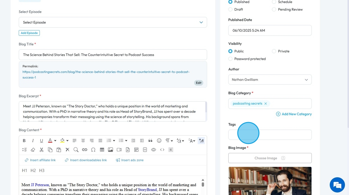 26. "EXTRA INFO" Add the "Tag" and save the Blog.