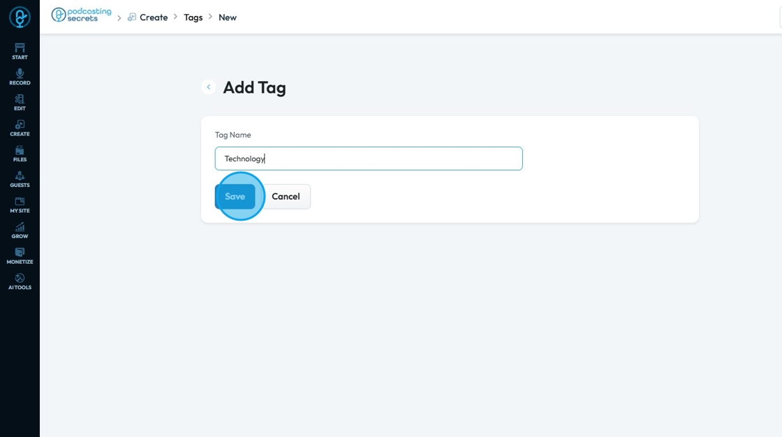 6. Write the desired tag and then click "Save" to save the tag or click "Cancel" to delete the progress
