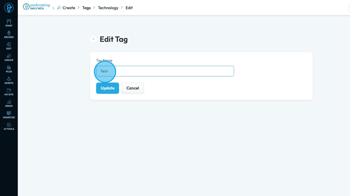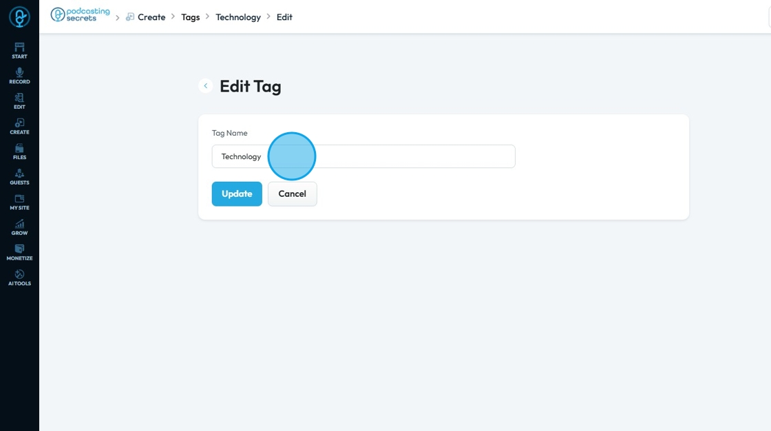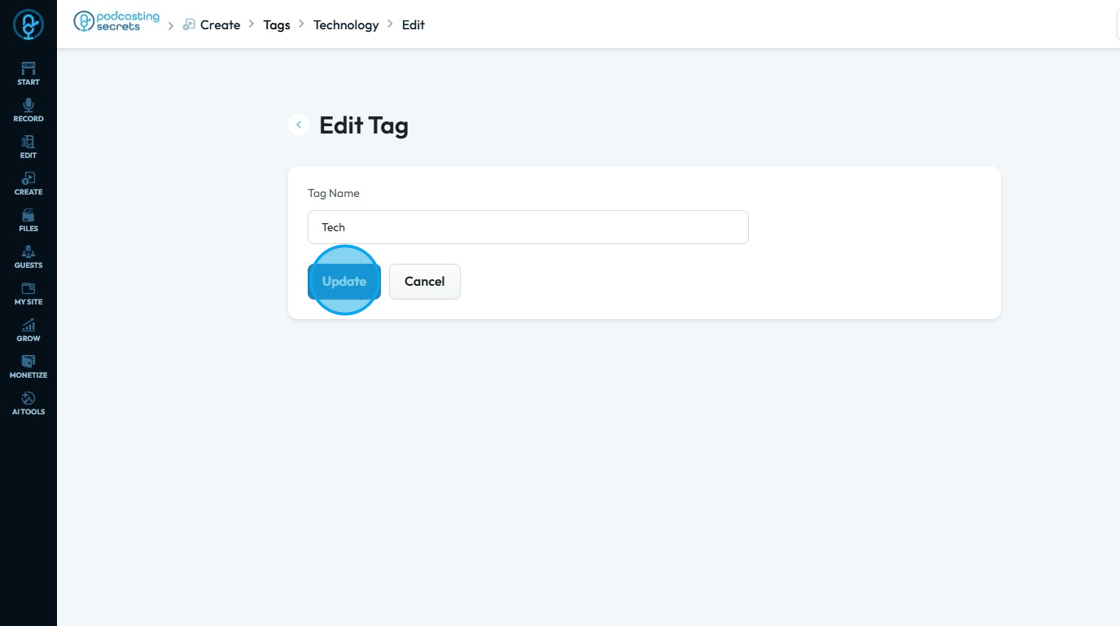 14. Click "Update" to change the title of the tag or click "Cancel" to undo the changes - meaning you will keep the original title