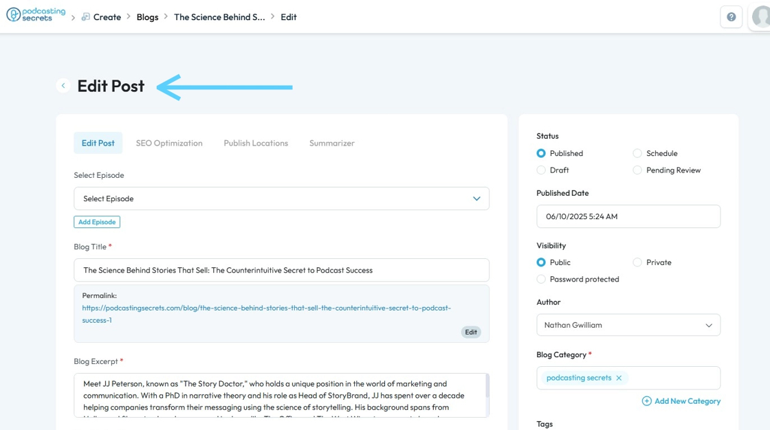 23. "EXTRA INFO" To add a new Tag to an existing Blog go to "Edit Post" page
