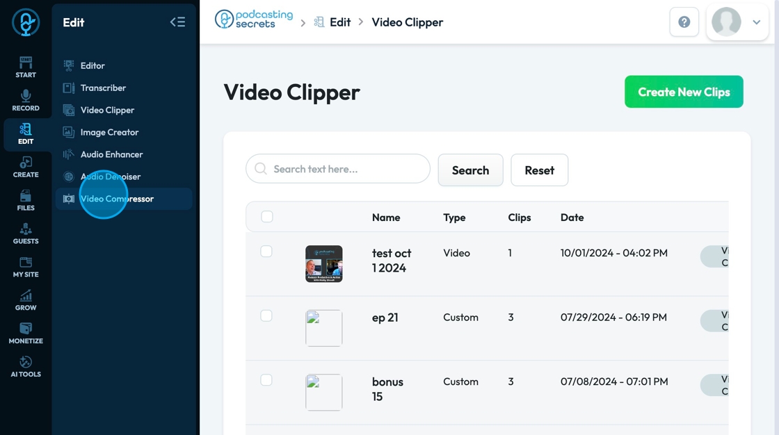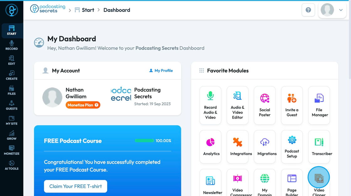 2. 1. Click "Video Clipper" in "Favorite Modules" on the "Dashboard"