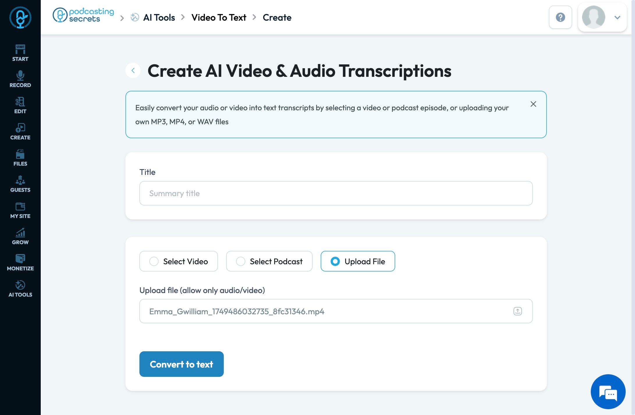 3. Click "Video to Text"
