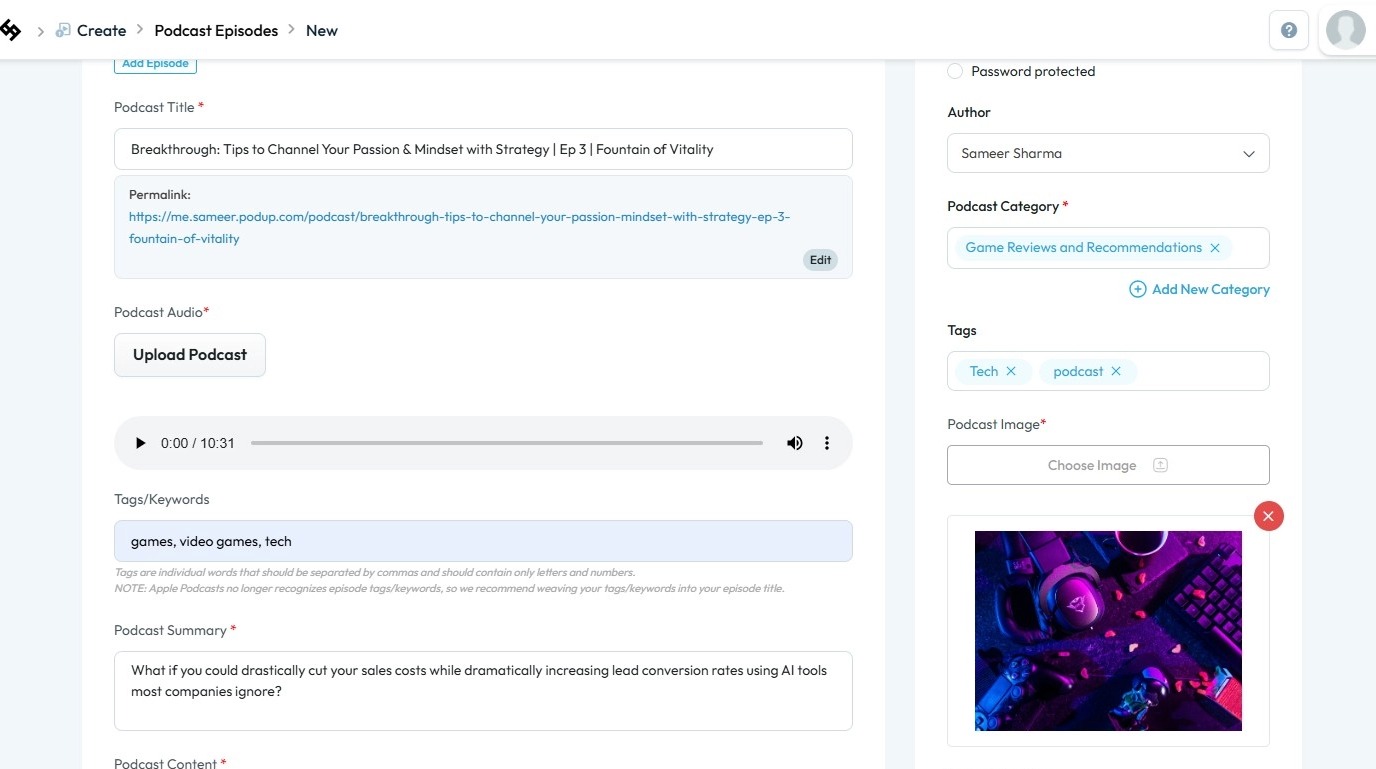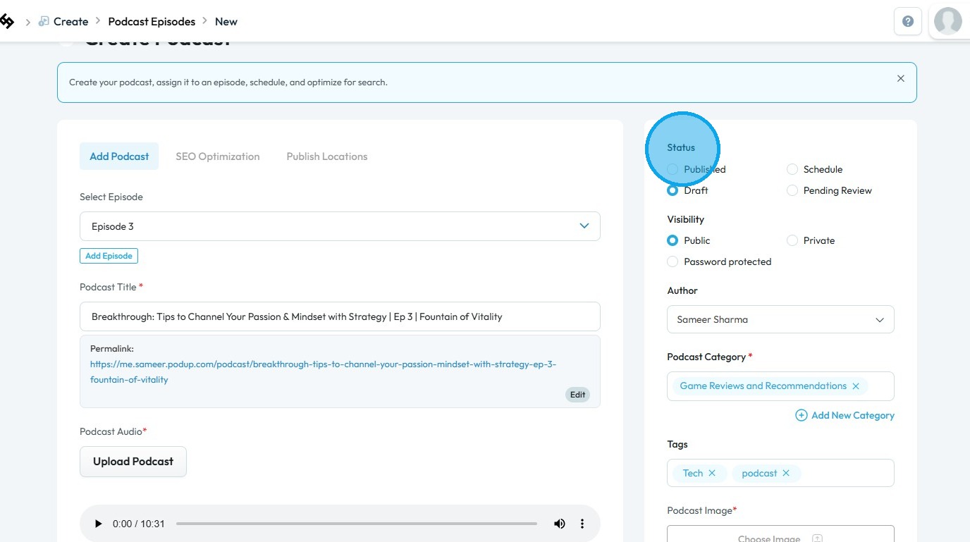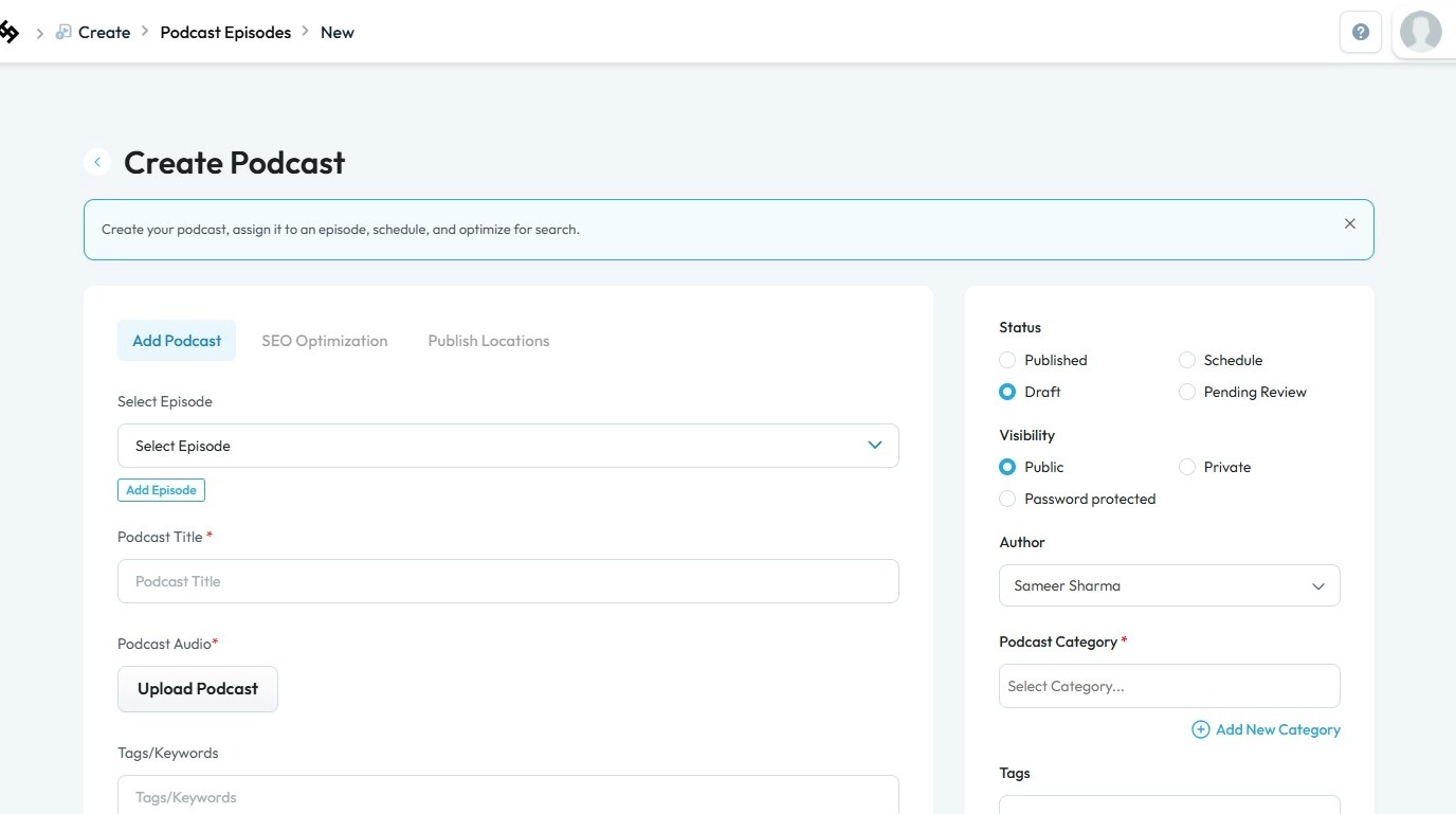 5. You will be directed to the “Create Podcast” page