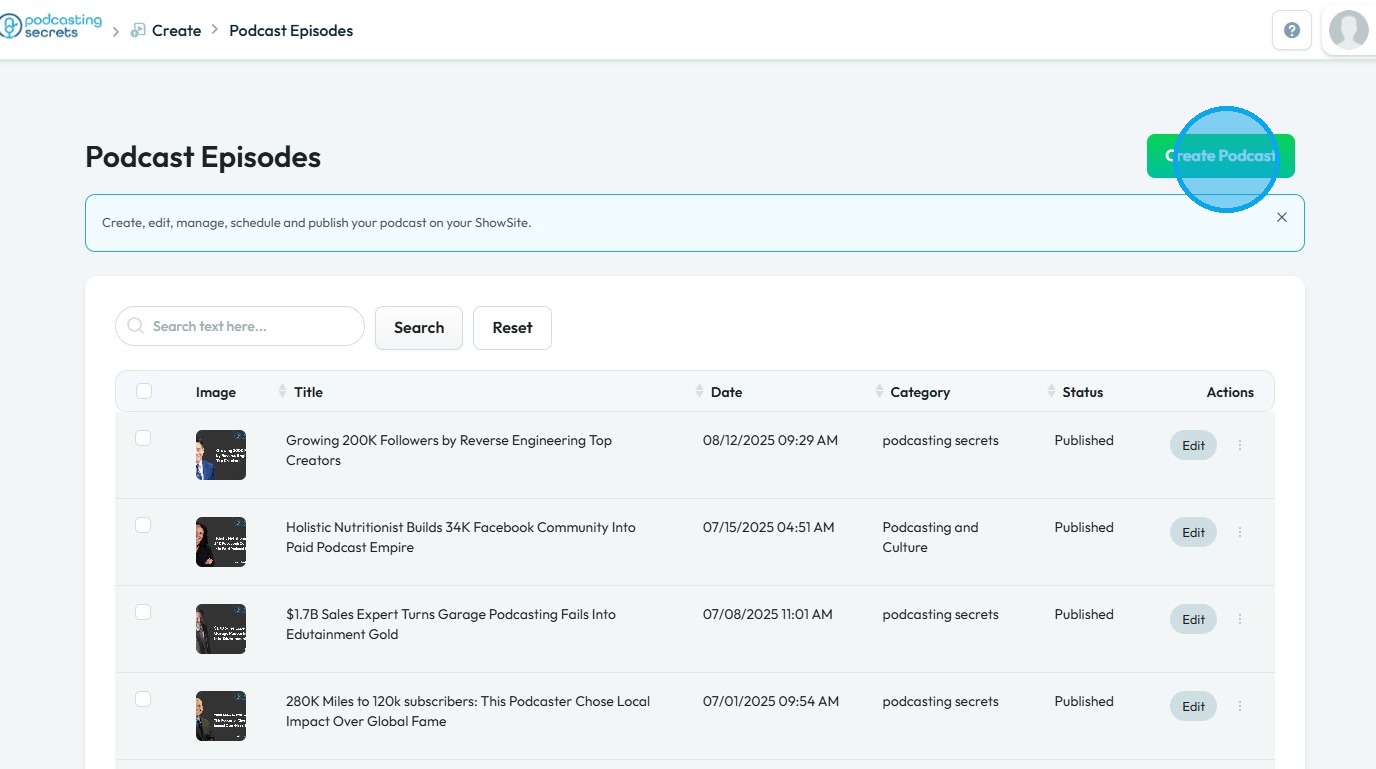 4. Click "Create Podcast"