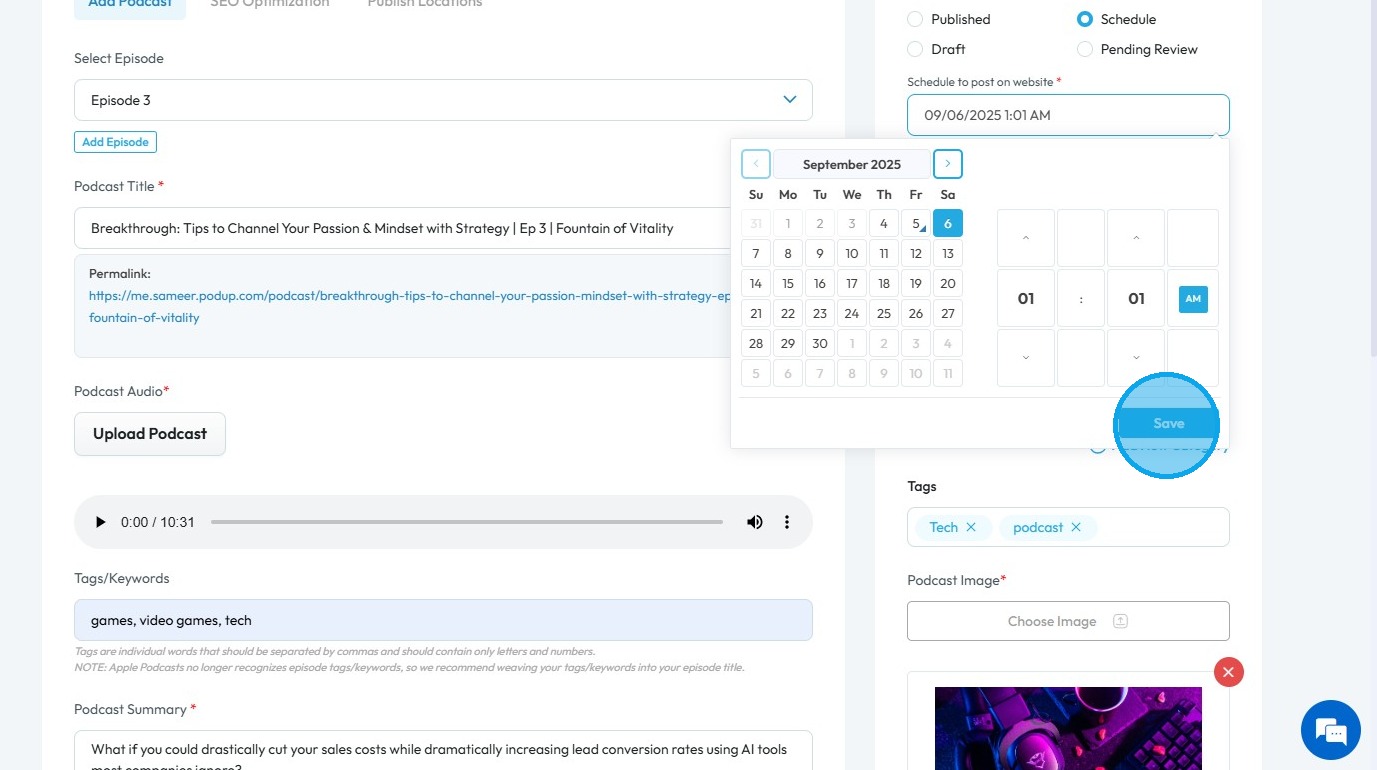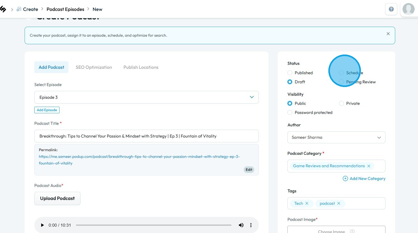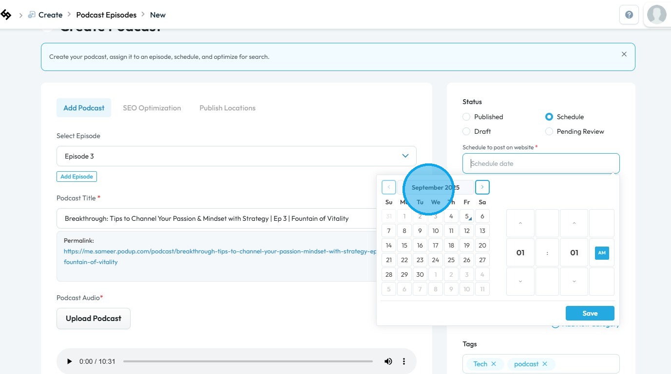 How to Schedule a Podcast Episode on Podup