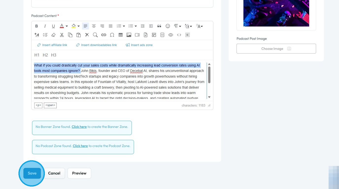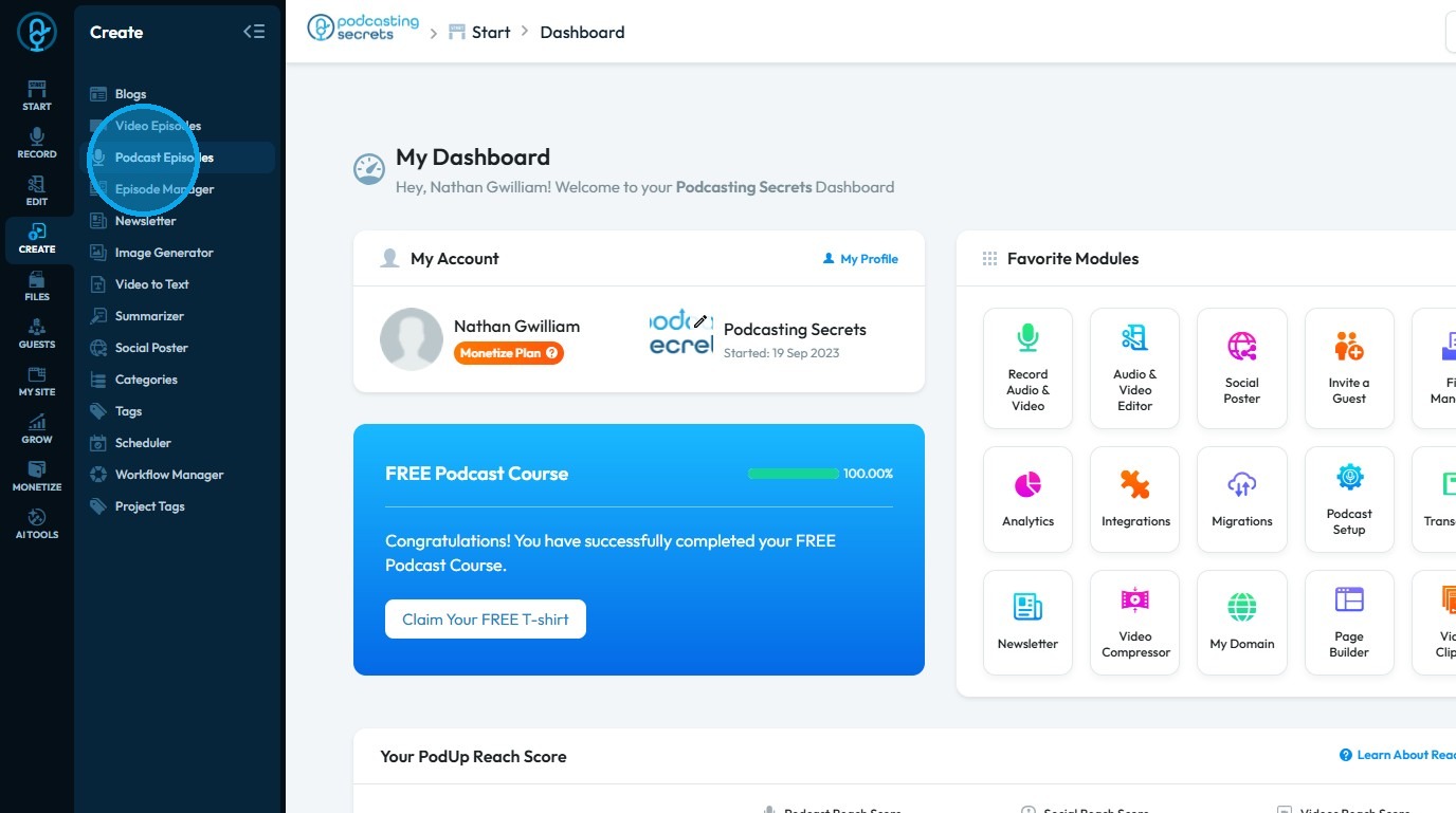 By following this guide, you can easily publish your episodes on various social media channels, enhancing your podcast's visibility and engagement. 1. Navigate to https://app.podup.com/home 2. Click "Create" 3. Click "Podcast Episodes" 4. Click ...