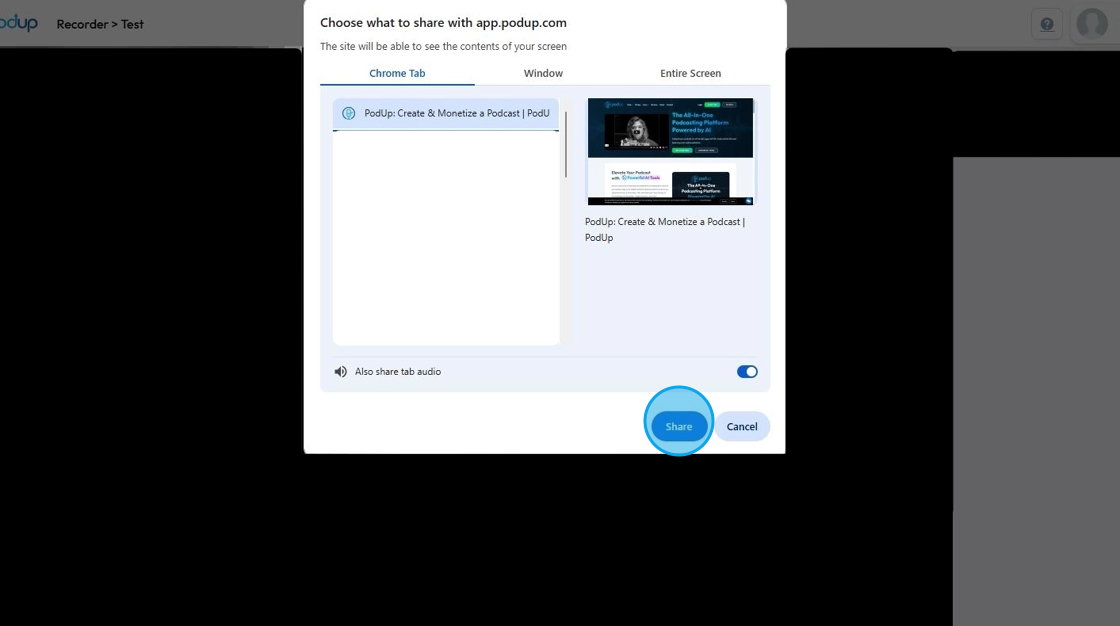 How to Share my Screen While Recording in Podcasting Studio on PodUp