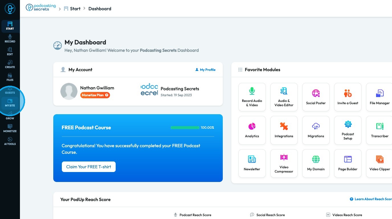 2. Click "My Site."