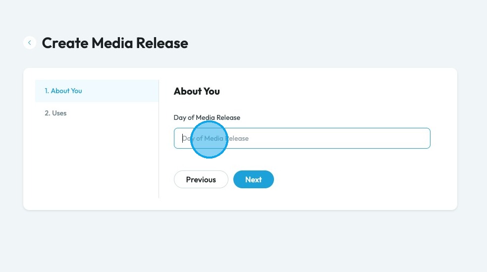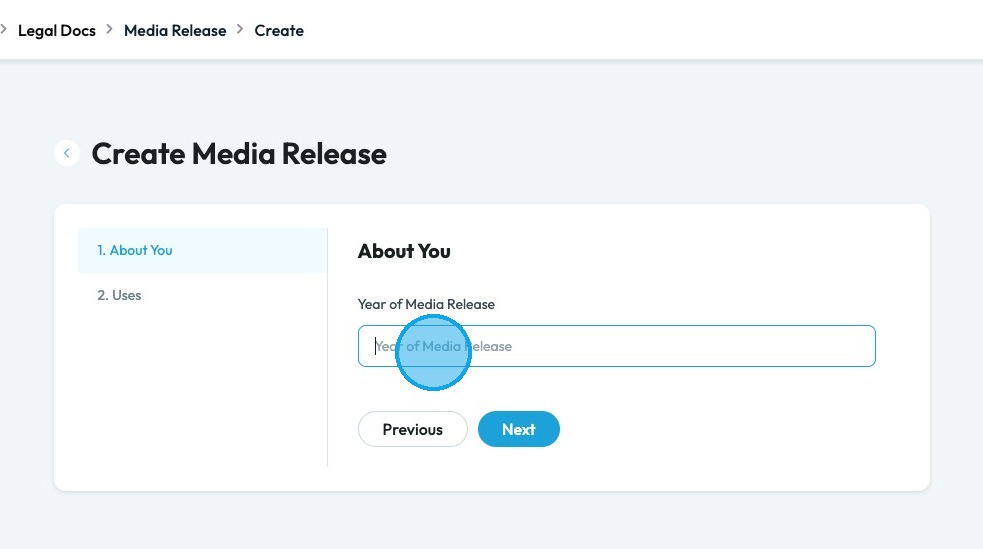8. Click the "Day of Media Release" field and insert the year of the media release