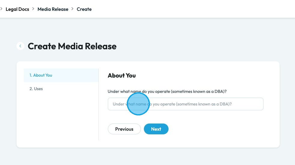 5. Click the "Under what name do you operate(sometimes known as a DBA)?" field and enter your DBA