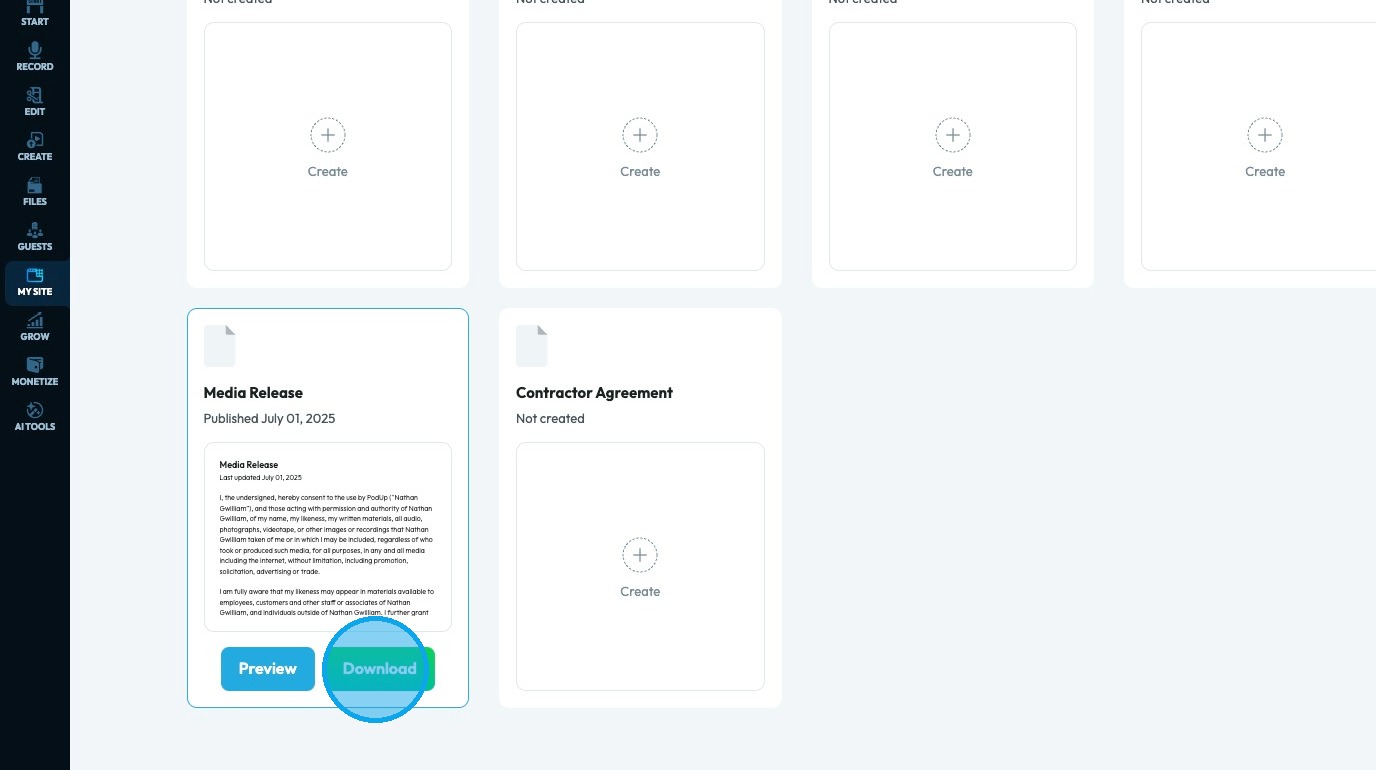 15. Click "Download" to download a copy of the media release
