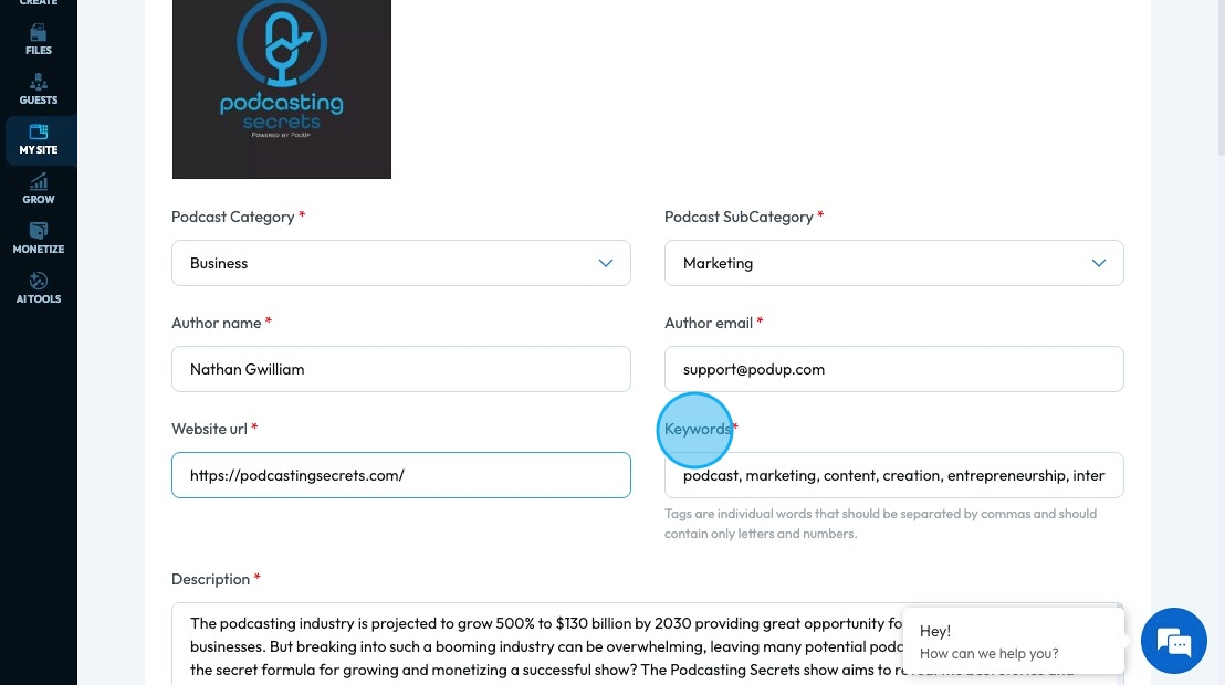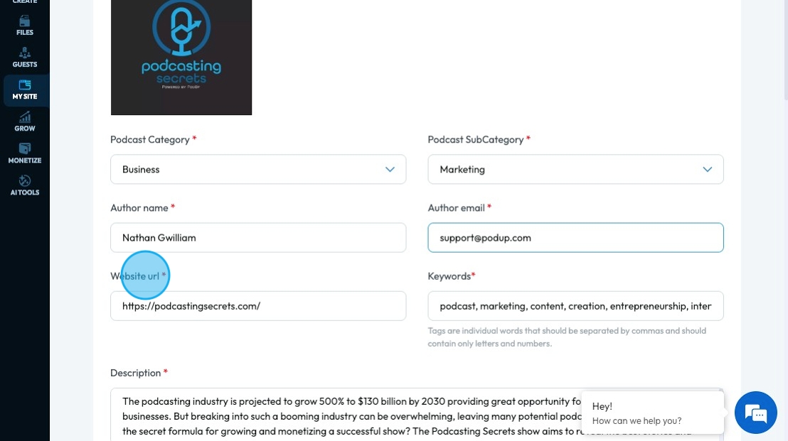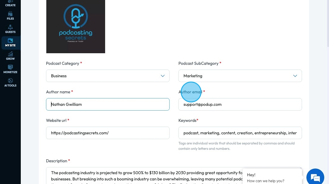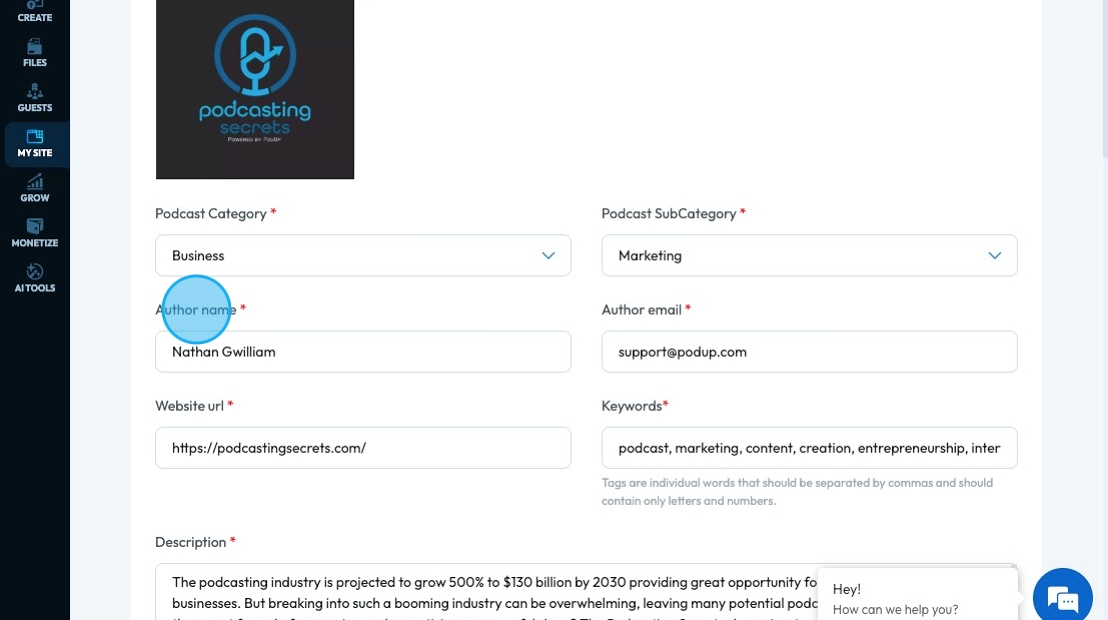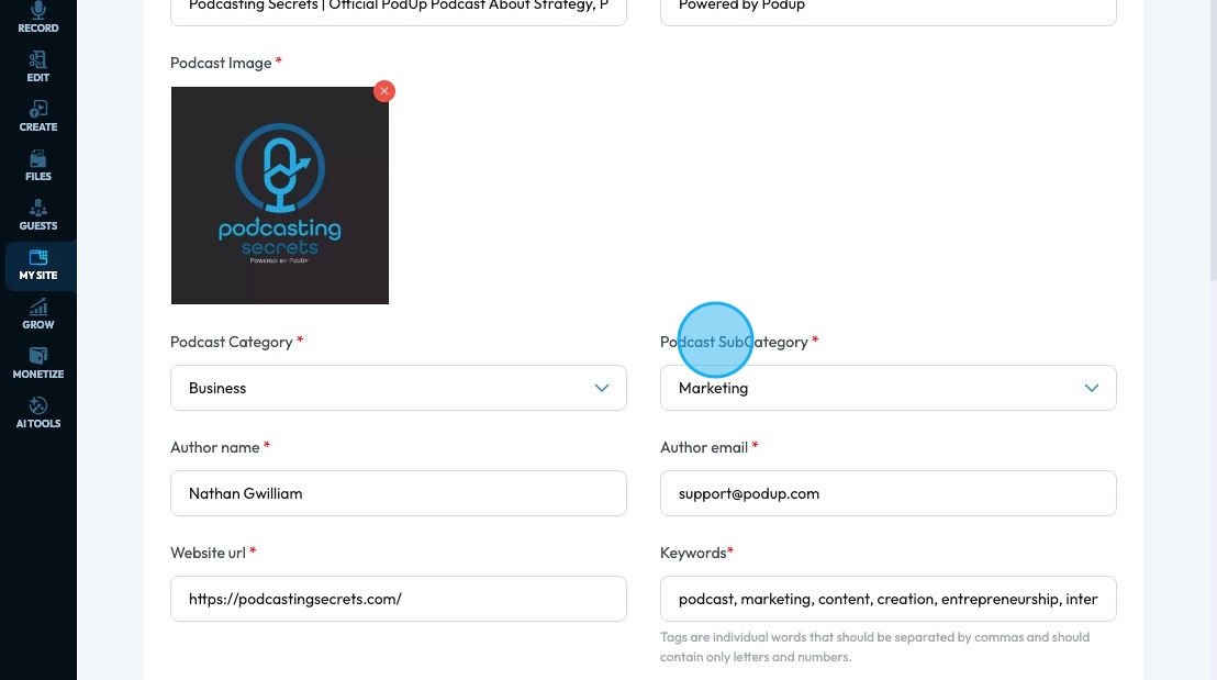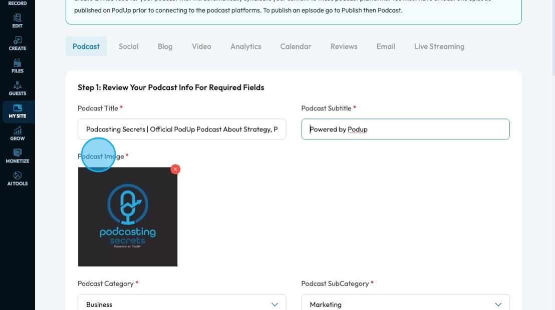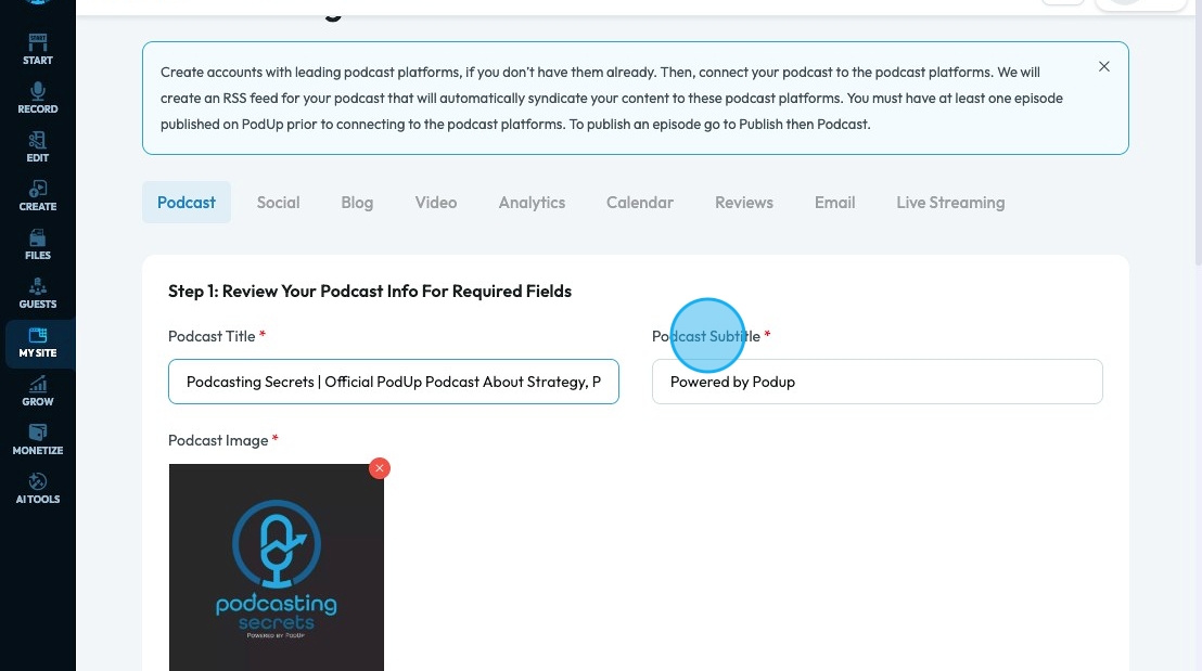 8. Click "Podcast Image " to upload the podcast image that will be displayed on each of your platforms