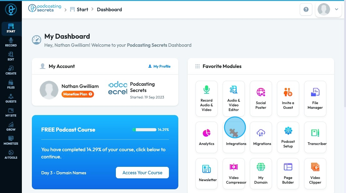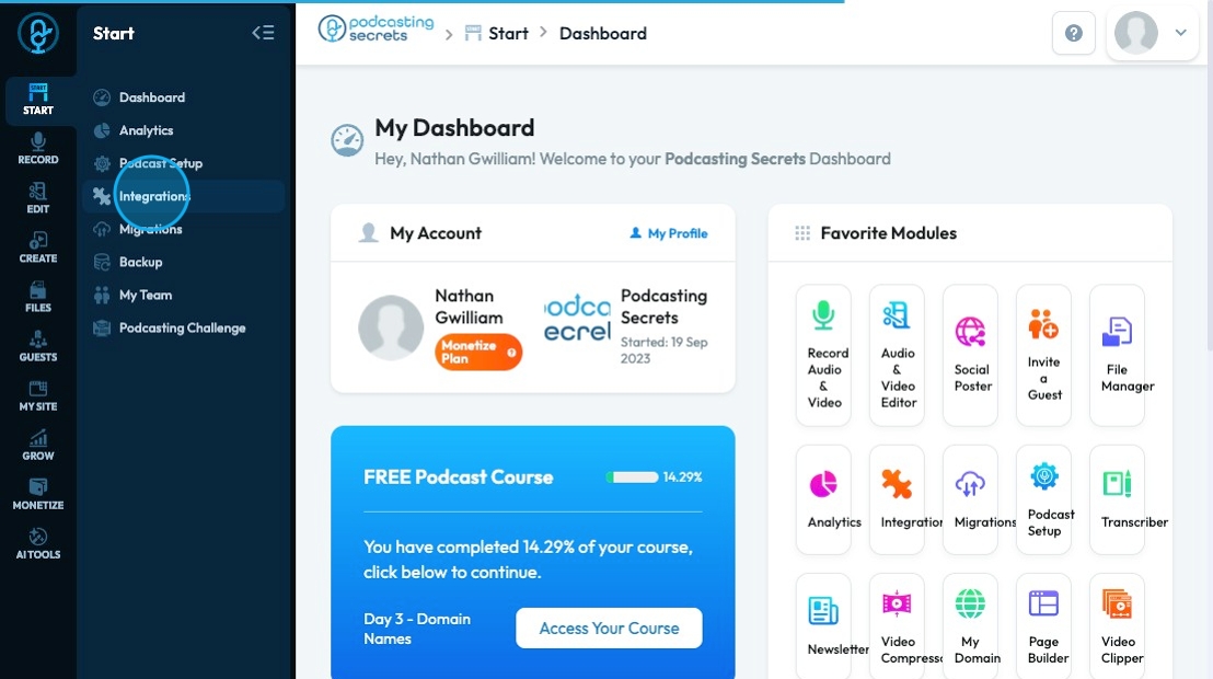 2. 1) Click "Integrations" in "Favorite Modules" on the Dashboard