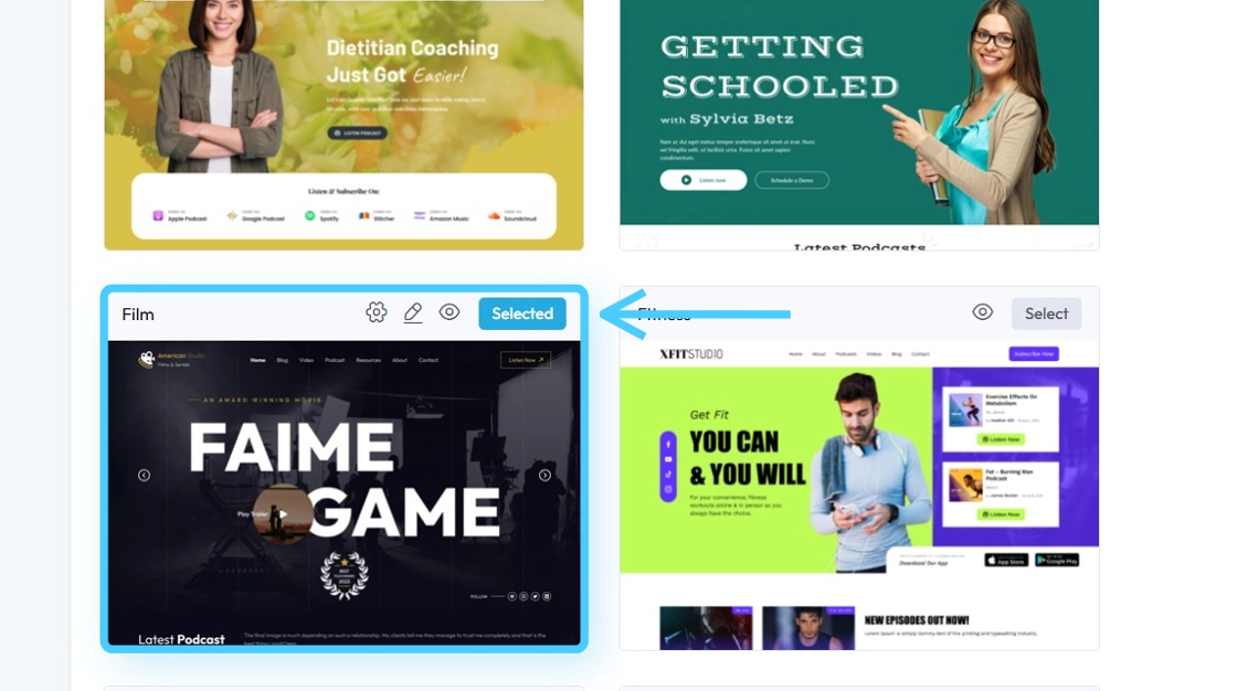6. To set a different Theme, click "Select" of a theme you want to apply.