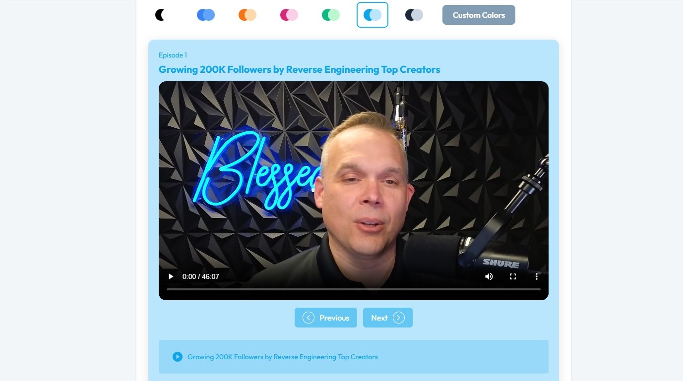 Use this guide to customize your PodUp embed player—choose audio or video, set modes, and personalize its look. 1. Navigate to https://app.podup.com/home 2. Click "Grow" 3. Select "Embed Player" 4. You will be directed to the “My Embed Players” page ...