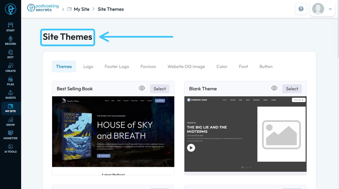 4. The ‘Site Themes’ page will load.