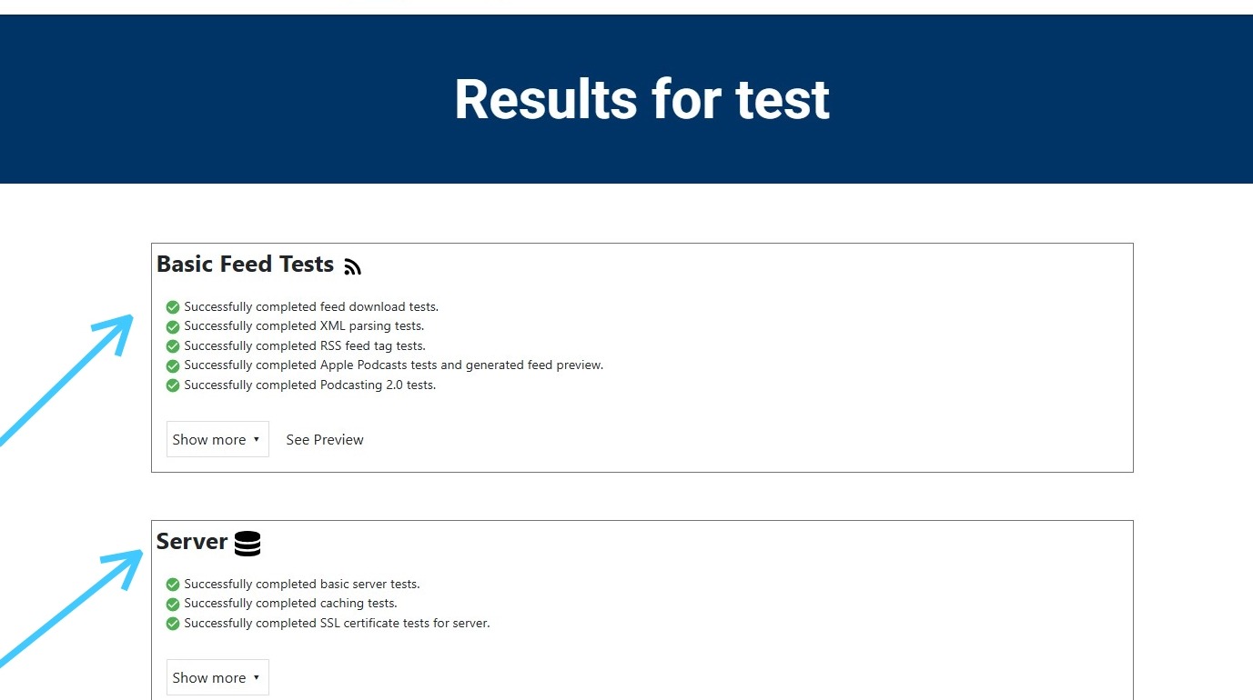 5. Test results will appear. Look out for any errors that could be preventing your podcast from appearing on Apple Podcasts.